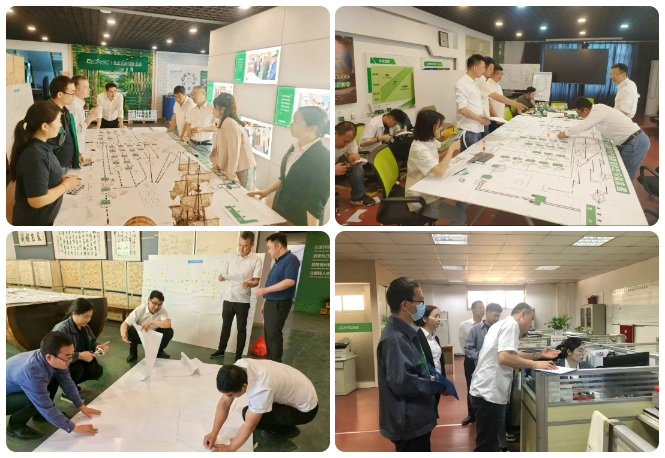 此次價值流精益改善周,對主要產品的工藝流、信息流、實物流等進行現場調研,數據搜集,逆流生產全程,發現當下整個生產經營中存在的 “爆破點”從而尋找改進機會,優化全流程,最后形成產品未來價值流圖。