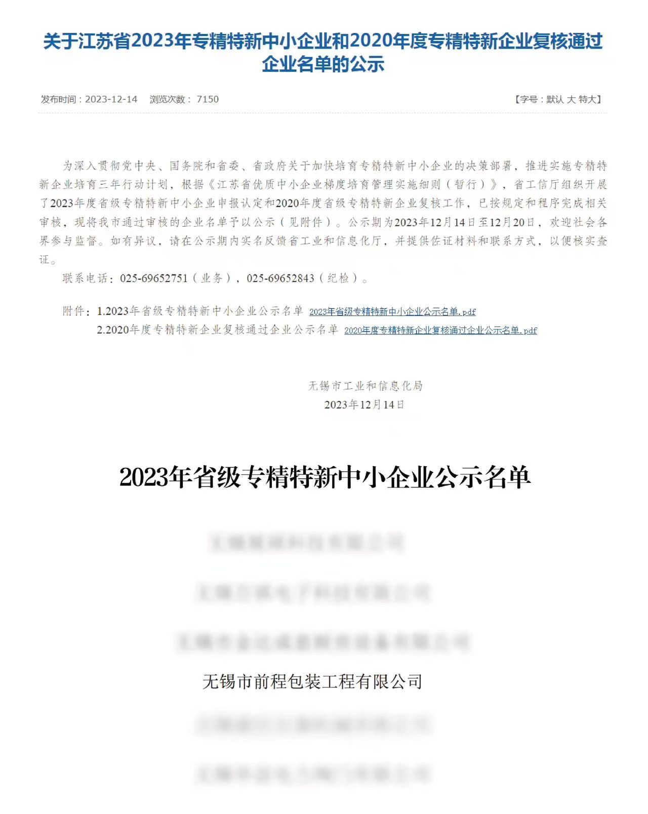 近日,無(wú)錫市工業(yè)和信息化局發(fā)布了《關(guān)于江蘇省2023年專精特新中小企業(yè)和2020年度專精特新企業(yè)復(fù)核通過(guò)企業(yè)名單的公示》,前程公司從眾多申報(bào)的企業(yè)中脫穎而出,被認(rèn)定為江蘇省“專精特新”企業(yè)。